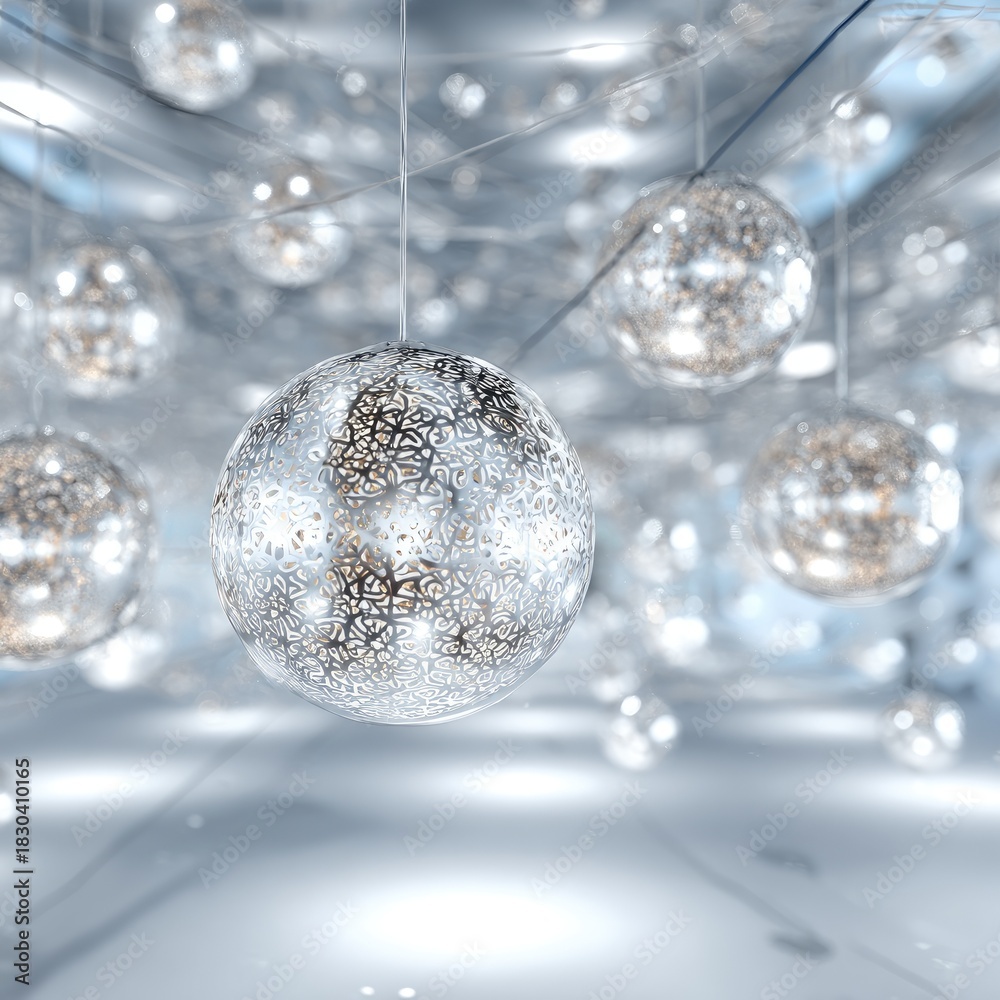 Naklejka do Szkoły Tańca - Silver Disco Balls Hanging In A Modern Interior #1830410165