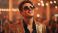 • Man in sunglasses and a dazzling gold sequin jacket smiling and soaking up retro disco vibes, standing confidently amid sparkling bokeh lights and festive nightlife energy