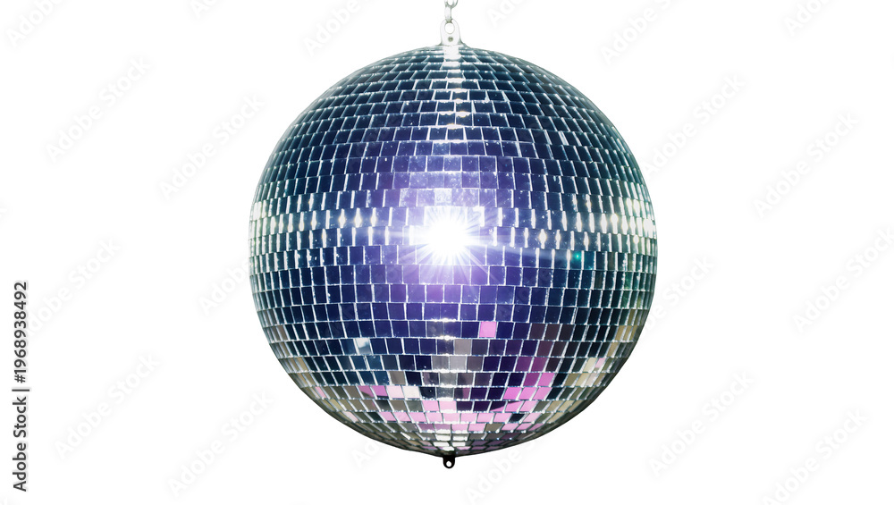 • Sparkling disco ball with mirrored squares, isolated on transparent background