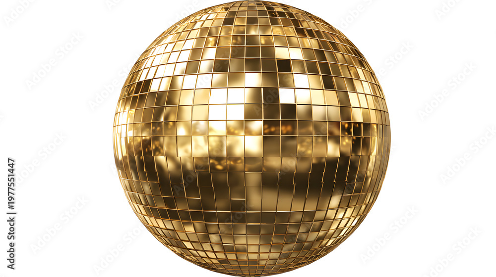 • Shiny disco ball separately isolated PNG on transparent background, mirror ball with reflective tiles for party and dance floor decoration