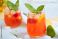 • Cold drink. Orange drink with mint and fruits. Fresh drink in glass. Summer drink. Drink from beach bar.