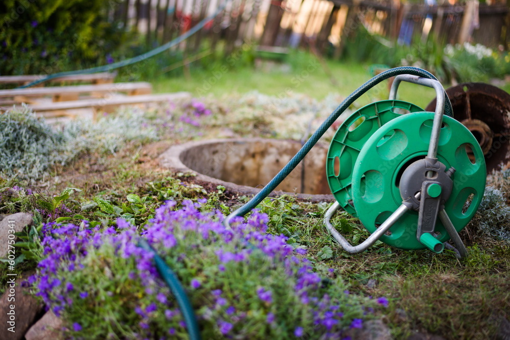 Naklejka na Zmywarkę - Czerpanie wody ze studni, weżem ogrodowym #602750341