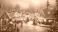 • Christmas village with Snow in vintage style. Winter Village Landscape. Christmas Holidays. Christmas Card. 3d illustration