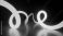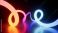 • 3d rendering of a multicolored neon curved line with loops, glowing in the dark and reflected in a mirrored floor. Abstract synthwave background. Rainbow colors.
