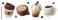 • Coffee cups 3d vector icons set. Plastic and paper take away cups and ceramic mugs with cappuccino and black coffee.