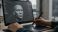 Naklejka na stół i biurko - Man creates 3d model of human head on laptop with graphics tablet for architectural rendering. 3d... #1318585785