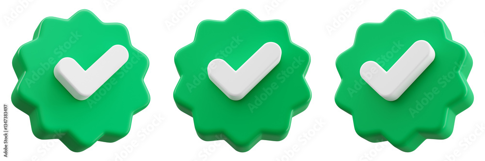 Naklejka na stół i biurko - Set of Green Check mark symbol 3d icon illustration, verified, approve symbol isolated on... #1347383497