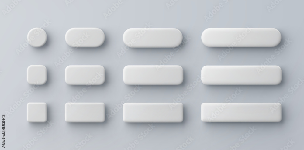 Naklejka na stół i biurko - 3d vector white plastic rounded rectangle button on gray background. Realistic minimal icon with... #1359236413