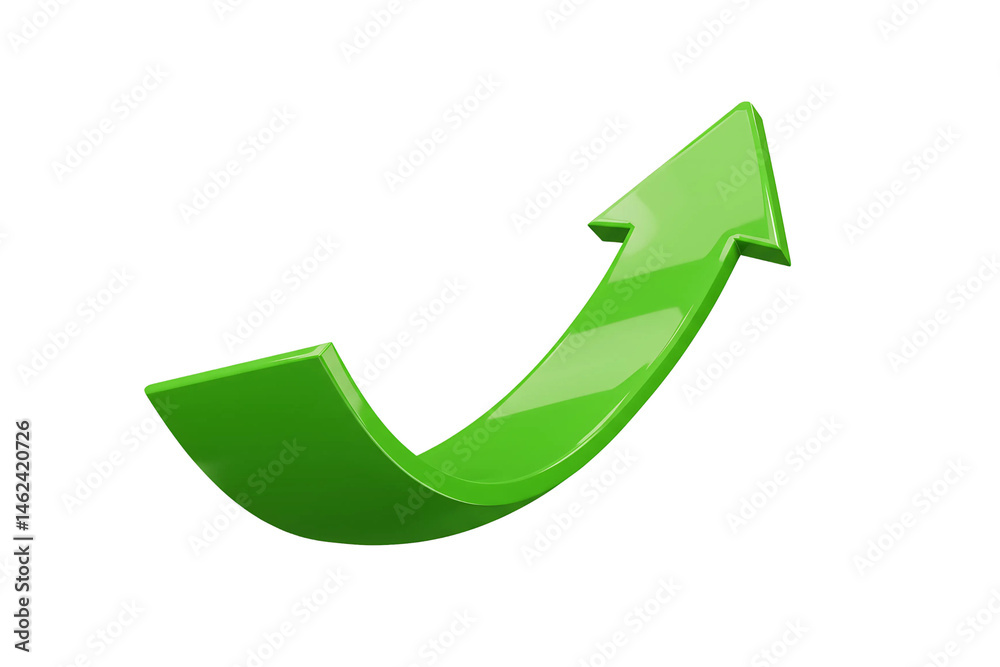 • 3d green arrows curving upward isolated on transparent background