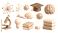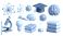 • School and education icons 3d render set. School bag, globe, open book, brush, pencil, pen, graduation hat, glasses book, brush, classroom, college, creativity, education, globe, grad,