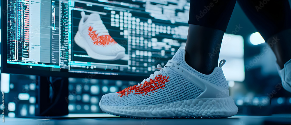 Naklejka na stół i biurko - 3d Printed Futuristic Shoes On Computer Screen #1484314447