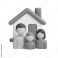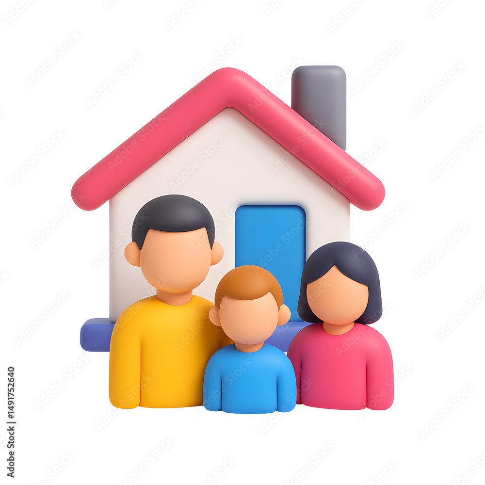 • 3D Render of Family in Front of House Home Sweet Home Concept