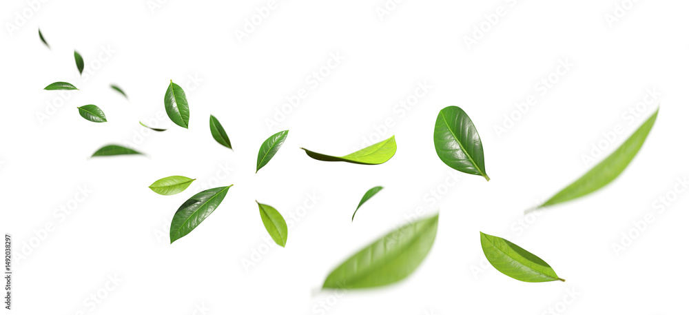 Naklejka na stół i biurko - Freshness leaves flying relaxation isolated transparent backgrounds 3d rendering png #1492038297