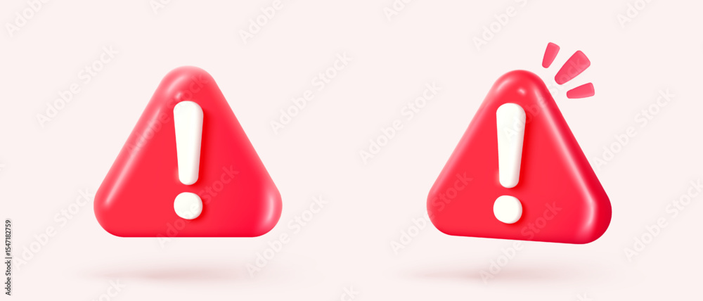 • 3d red danger attention for help or emergency notice alert on rescue warning. loud alert important for security urgency concept. 3d warning urgent buttons icon vector render illustration