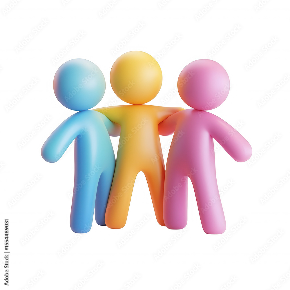 • 3d icon three colorful 3d human figures holding hands symbolize unity and teamwork against a transparent background. Isolated transparent png