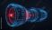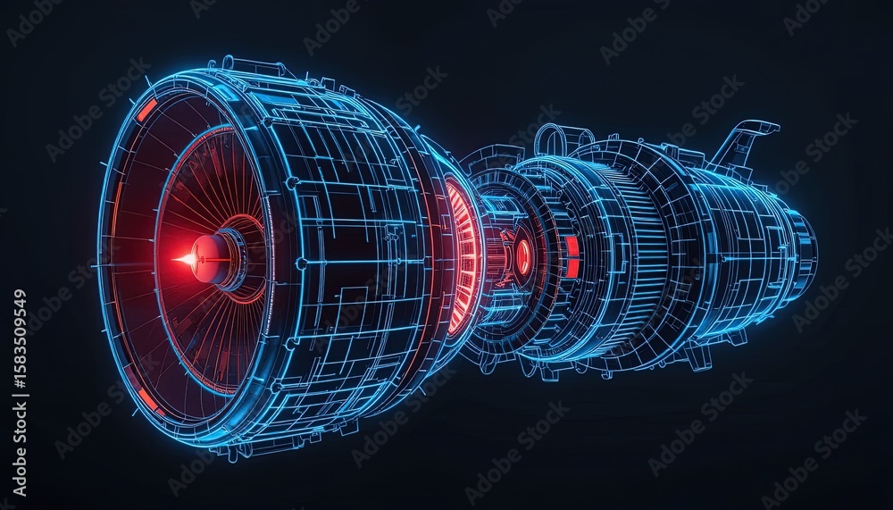 Naklejka na stół i biurko - A futuristic jet engine design rendered in glowing lines. #1583509549