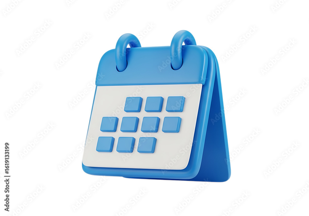 • Illustration of 3d blue and white calendar icon isolated on transparent background