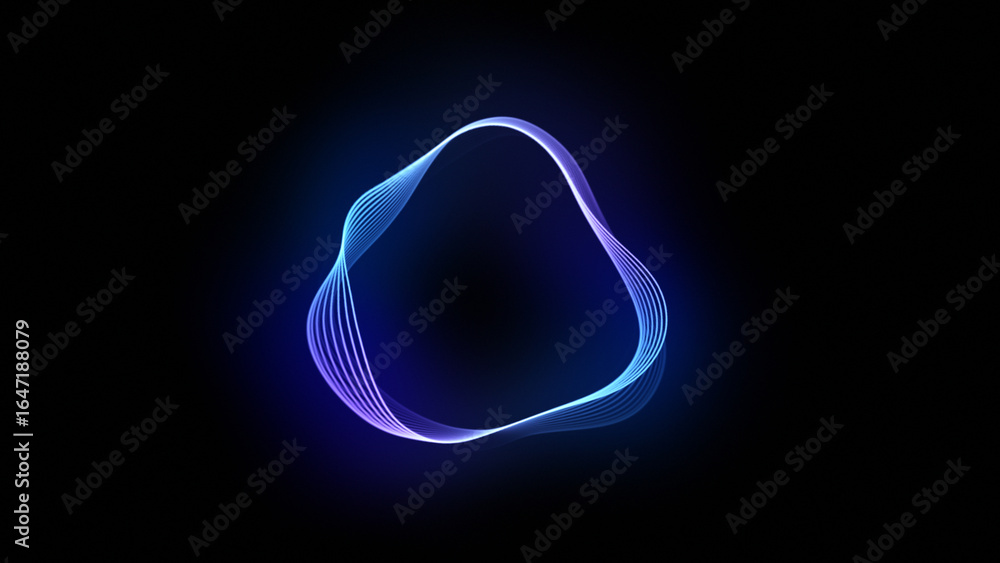 • Abstract technology conсept of purple and blue neon gradient 3d lines. Glowing futuristic waves, sound waves and audio waveform. Artificial Intelligence, big data, information graphics.