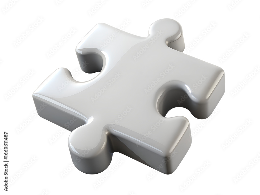 • 3d illustration of a single, white jigsaw puzzle piece isolated on a transparent background, representing a concept of problemsolving and connection
