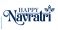 • Stylized “Happy Navratri” text with decorative font and divine eye-flame symbol, celebrating Hindu festival with spiritual and festive elements