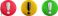 • Vector cartoon 3d exclamation mark sign set. 3d Render of red round, yellow, green attention sign. Plastic warning symbol, caution notification icon for infographic, web, app, design, game.