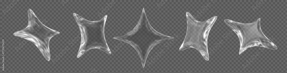 • 3d glass transparent sparkle star set. Design element. Stock vector illustration on isolated background.