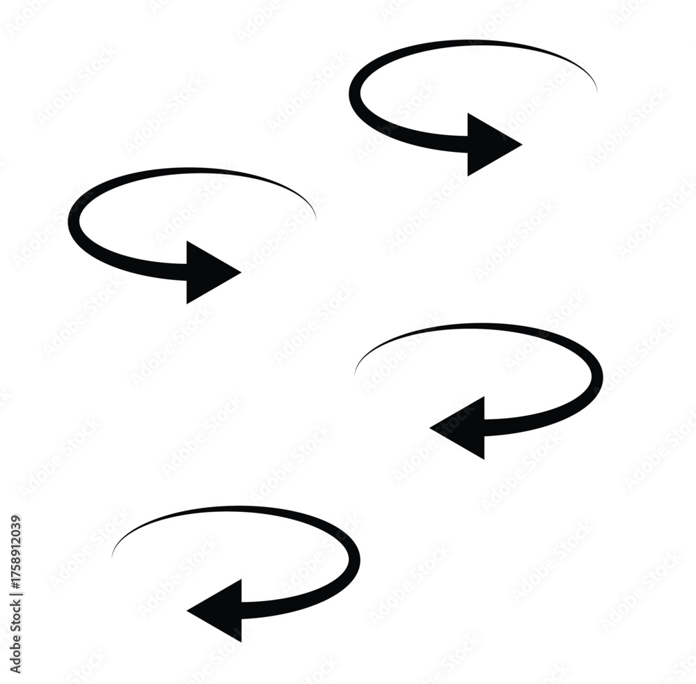Naklejka na stół i biurko - Set of four circular or orbiting black arrows symbolizing rotation or movement #1758912039