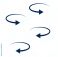 • Set of four circular or orbiting black arrows symbolizing rotation or movement