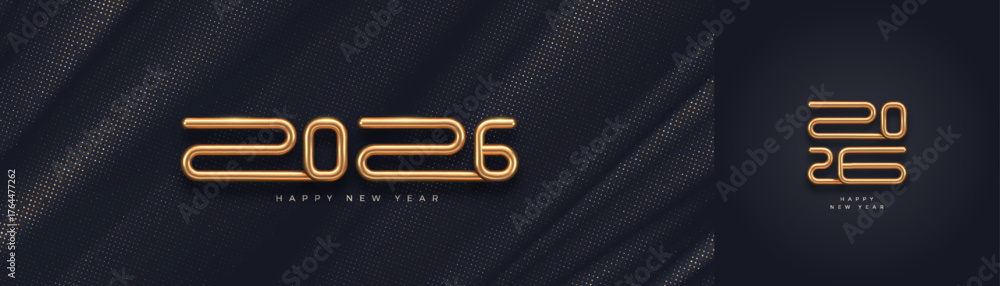 Naklejka na stół i biurko - Luxury 3d Golden 2026 New Year Typography Vector Design Set with Dark Textured Halftone Backgrounds. #1764477262