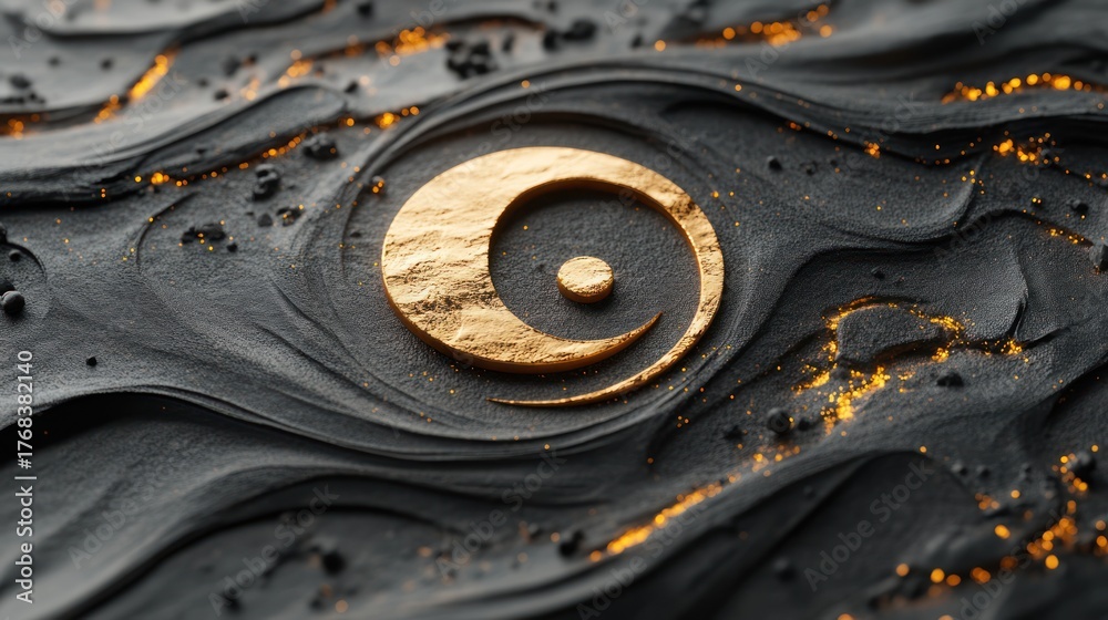 • Abstract gold yin yang on dark textured surface. Use Background, wallpaper