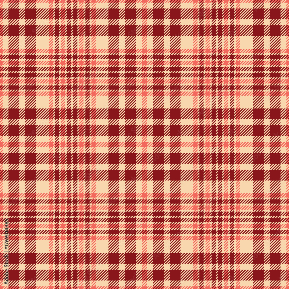 • Seamless red color check pattern. Repeating patern plaid. Checkered design for prints. Repeated tartan fabric. Vector scottish fabriс. Ekose texture. Madras flannel. Checker line. Stripe gingham