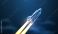 • Spaceship takeoff. Rocket launch, Space shuttle, Mission start, Digital technology in spacecraft, Space travel, Rocket flight, discovery concept. Startup company symbol