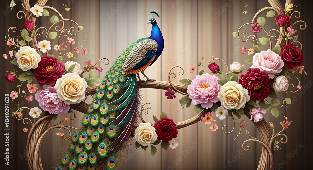 • Colorful Peacock 3D Floral Wallpaper, 3d mural wallpaper, decorative wall mural style, 3D Floral Wallpaper.