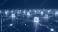 • Abstract digital network of glowing blue cubes connected by light trails on a dark background