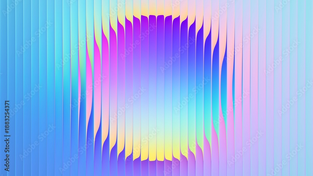 • Fractal glass texture with soft circular pastel neon gradient glowing through translucent waves. Futuristic reeded glass surface with luminous circular gradient for creative visual projects. 3d render