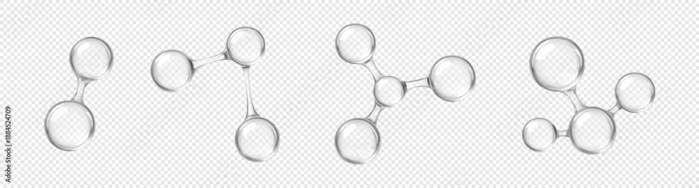 • 3D molecules or atoms models. 3d abstract molecular structures isolated on transparent background. Vector illustration