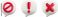• Vector cartoon minimal 3d prohibition speech bubble set with red attention signs. Realistic render block message icon, exclamation mark, ban or stop chat cross button, important info symbol for app.
