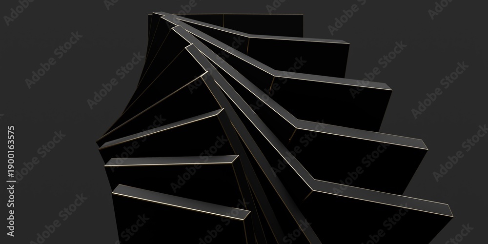 • Abstract 3d background with black geometric Blocks with Golden Edges on Dark Background