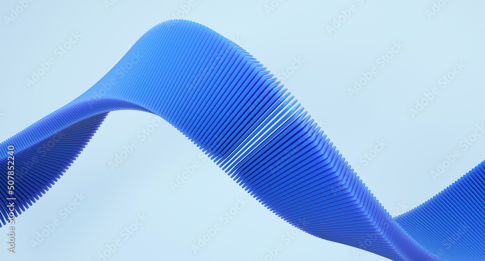 • Minimal geometric background with blue wavy shape. 3d rendering illustration.