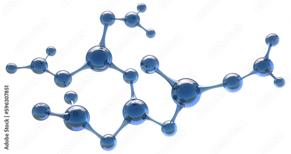 • Molecule 3D illustration. Abstract atom structure. Science, education, research, innovation