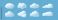 • 3d cloud. White cartoon fluffy clouds in bubble shape in blue sky, summer rounded cumulus icons. Weather forecast realistic symbols vector set