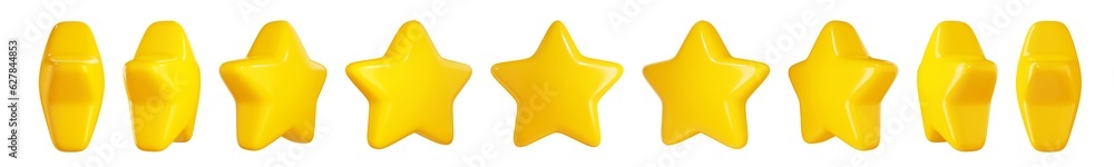 Naklejka na stół i biurko - 3d star animation set - rotation of yellow cartoon game element. #627844853