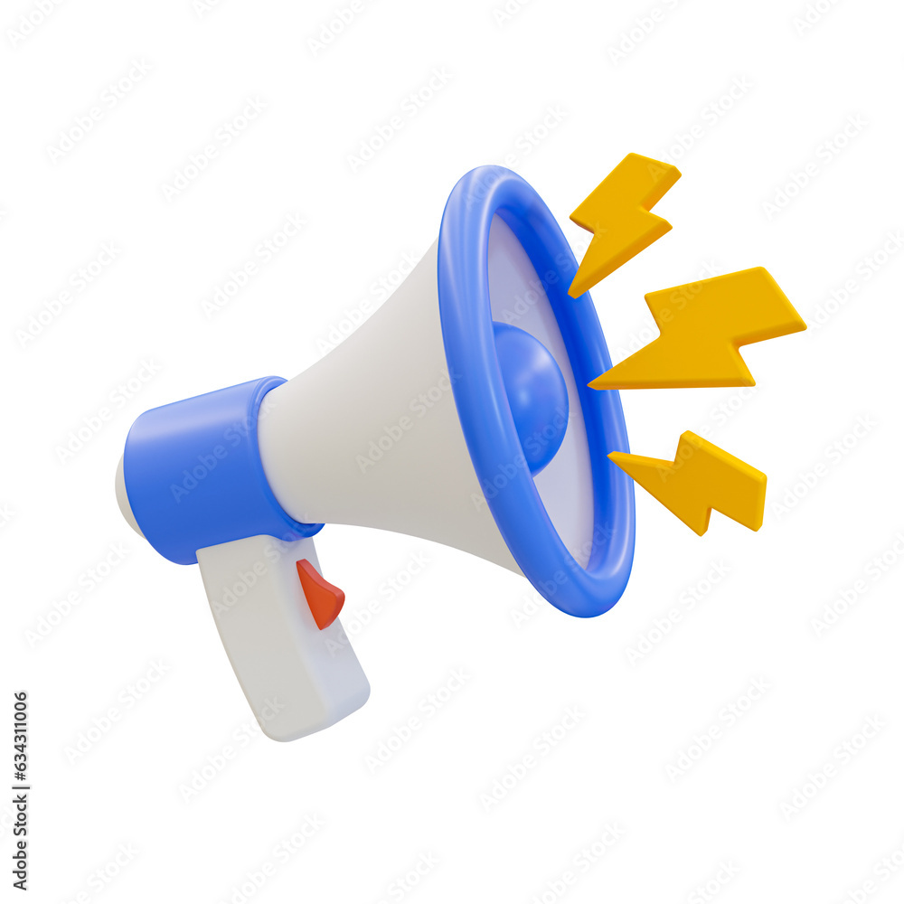 • 3d minimal promotion anoucement. business marketing concept. business advertisement. megaphones with lightning icon. 3d illustration.