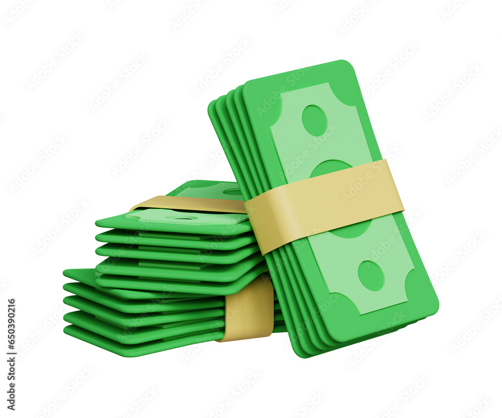 • 3D money bundles icon. Stack of currency banknotes. Business and finance concept. Banknotes stack icon. 3d illustration