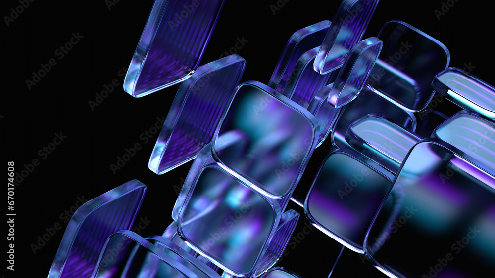Naklejka na stół i biurko - Dark background design, abstract geometric blocks, 3d render #670174608
