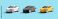 • Set of modern 3d render car models, simplified shapes, big wheels, new generation car, yellow black and white colors