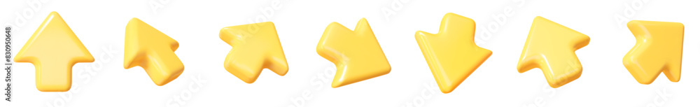 Naklejka na stół i biurko - 3d set of yellow click cursor icon. Mouse arrows pointing in different directions. Stock vector... #830950648