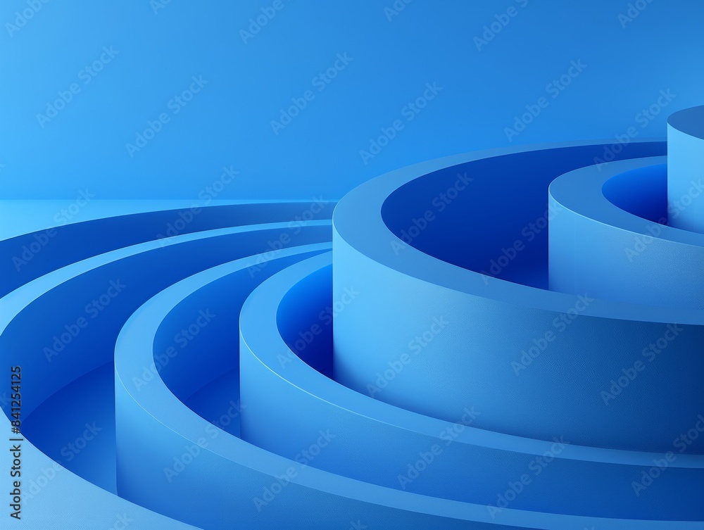 Naklejka na stół i biurko - soft blue 3d rendered abstract geometric forms, lines, and concentric rings swirl. Minimal blue... #841254125