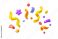 • Vector 3d confetti firework background. Colorful realistic firecracker icon, cute design elements isolated. Birthday or carnival illustration, party serpentine decoration set.