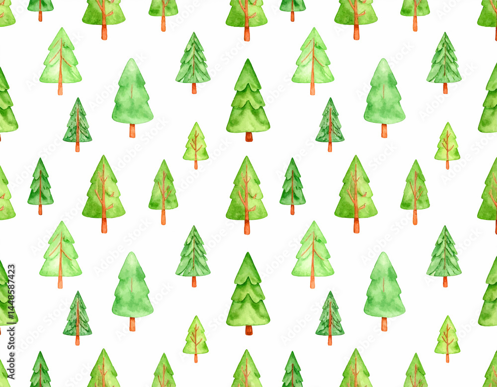 Naklejka na szafę - Akwarelowe drzewka wzór tekstura #1448587423